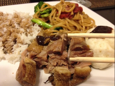 Pairings: The duck has these rich, Earthy, and gamey notes. The wine makes the tea smoke pop. The chow mein has bright pork flavors and Earthy noodles. It brings out the blackberry notes in the wine. The buttery and starchy flavors of the rice lift up the oak notes of the Rioja.
