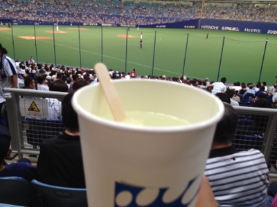At the game, they sell Chu-Hi made with Shochu, soda, and a lemon popsicle that you float in your drink. Very tasty.