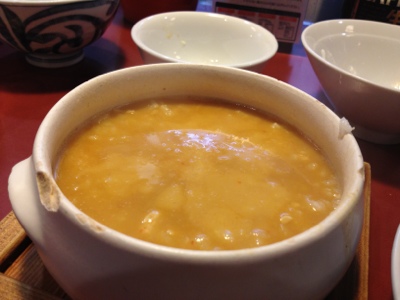 Then comes the ramen. This one was spicy with chunks of pork and a hard-boiled quail egg on top. I hate hard-boiled eggs, but I ate mine anyway.