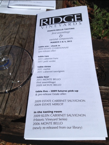 This last Saturday, Kara and I woke up bright and early to head over to Ridge Monte Bello in Cupertino for their 2011 Monte Bello Component Tasting (Our first as members of the Monte Bello Collector Club).