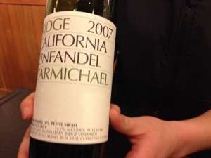 The Ridge 2009 Carmichael Ranch Zinfandel had a pretty nose of blackberries, blueberries, and tomatoes. The palate was mad earthy, and mad balanced.