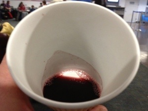 I was thinking about tasting the wines on the plane, but I’ve read enough articles (like this one) about the adverse effects of altitude and low humidity to know that it wouldn’t be fair to review them from 35,000 feet above sea level. Instead, I decided to borrow some coffee cups and taste these wines during our layover in Los Angeles.