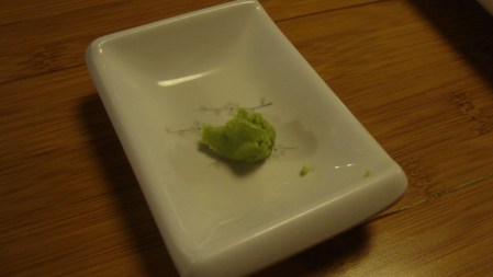 Use your chop sticks to mush down the wasabi under the ginger. Start dipping your fish once the soy sauce gets nice and cloudy. Add more wasabi, ginger, and soy sauce as needed.