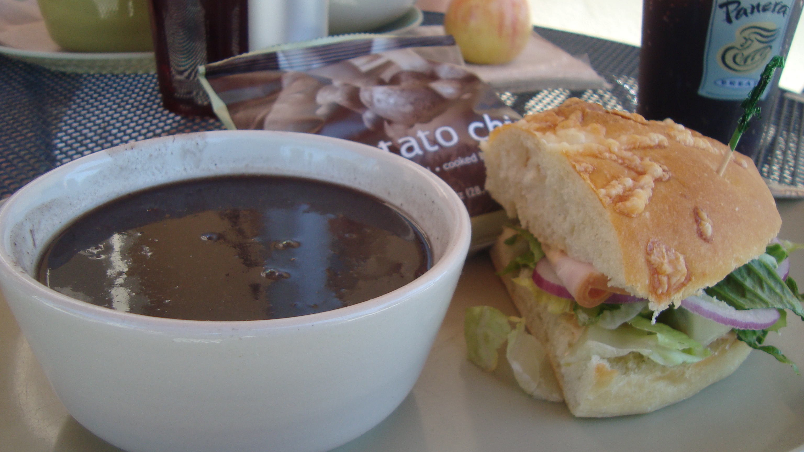 I got me half a turkey sandwich and a bowl of black bean soup.