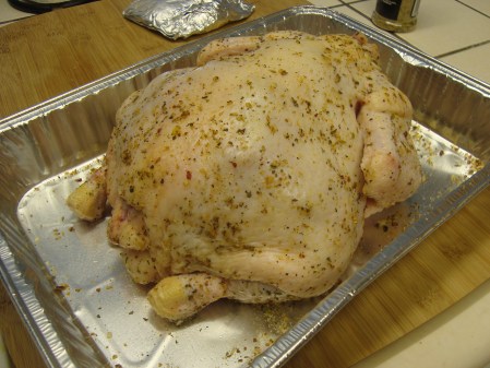 I got a 5 pound bird. I rinsed it, dried it inside and out, and rubbed it with "beer can chicken" seasoning... Yes... That stuff exists.