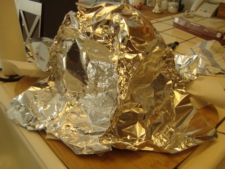 I let the chicken rest on the counter for about 15 minutes while Kara whipped up some horseradish mashed potatoes. The foil tent is to keep the chicken hot and moist. It also fights off cosmic rays.