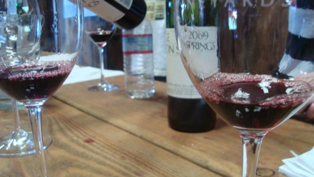 At table three, we hit up the 2009 York Creek Zinfandel. It had a palate of tires and berries. With 7% Petite Sirah, this wine had a LOVELY grip.