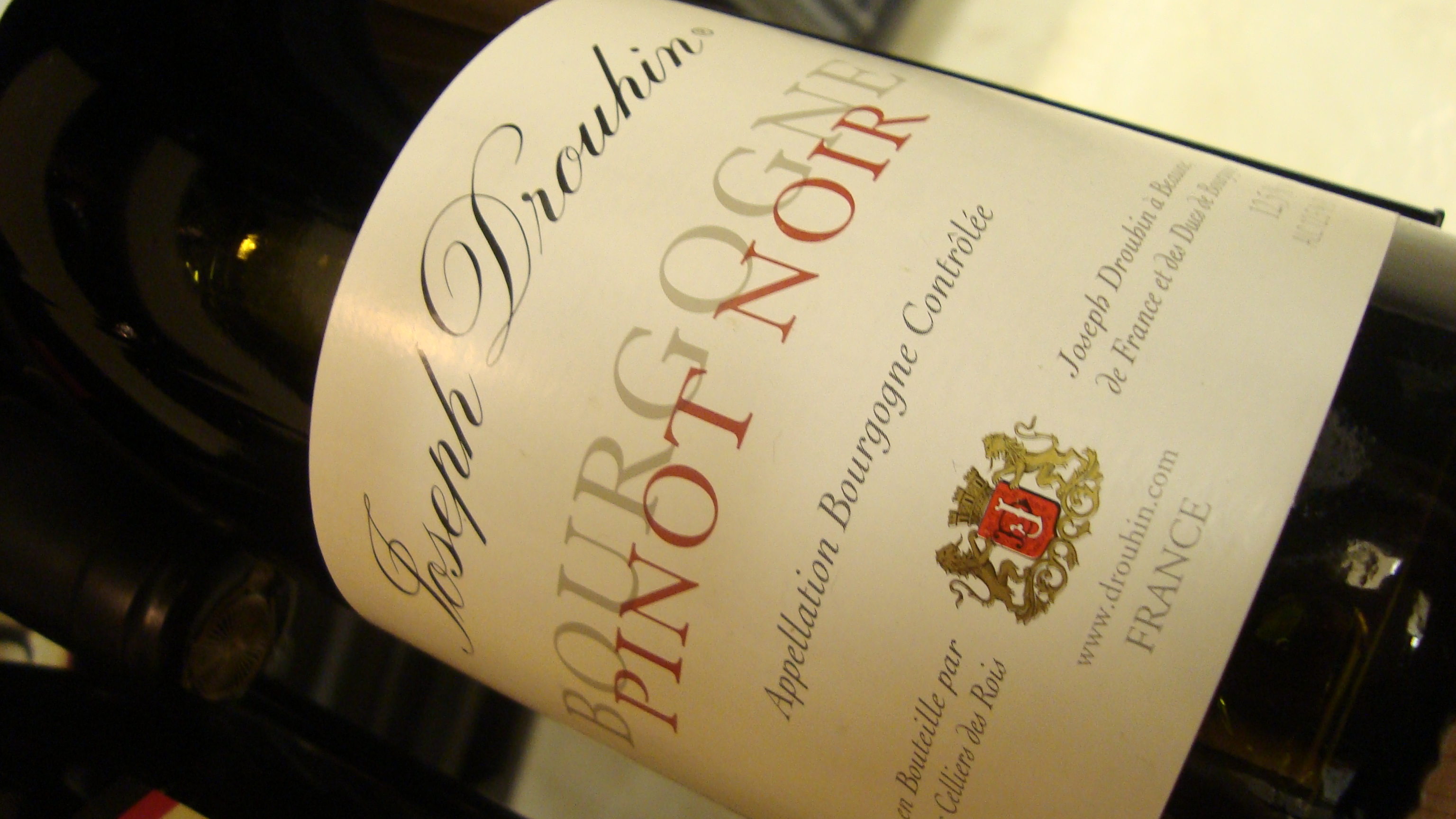 I’ve had this Joseph Drouhin 2007 Bourgogne Pinot Noir in the wine fridge for about a year now. The current vintage is on sale at BevMo for $13.39, so I’m guessing it cost me that much. Joseph Drouhin is one of the great shippers of wine from Burgundy. This is his entry-level Pinot Noir.