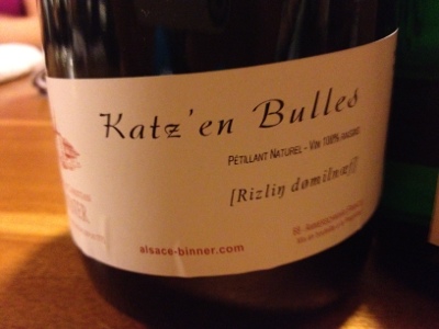 Christian Binner 2009 Katz’en Bulles: This sparkling Riesling from Alsace, France brought aromas of apple and lavender. There’s a good lemon/lime acidity to go with notes of honey and menthol on the palate. A great start.