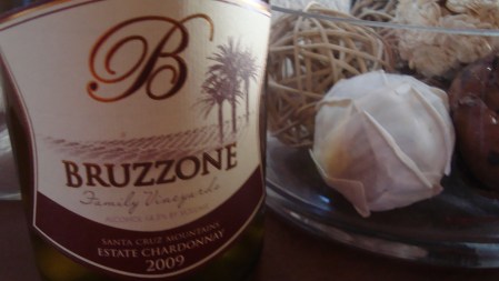 With it, she served up the Bruzzone 2009 Estate Chardonnay from the Santa Cruz Mountains. This wine was a gift from Thevegetarians for Kara’s birthday, so I didn’t bother looking up the price (that’s rude). I’m sure you can find out how much it was by clicking the link on the wine.