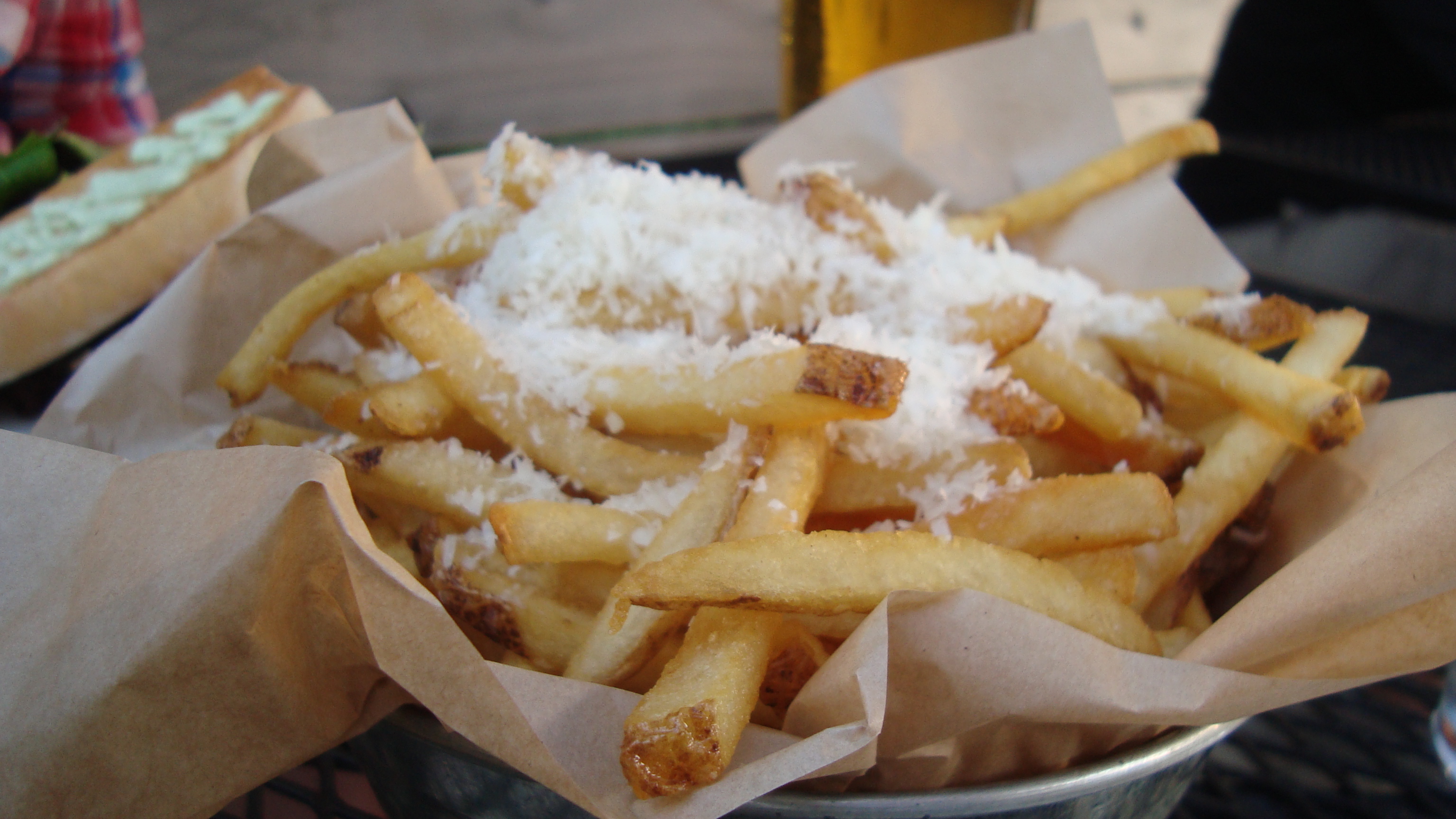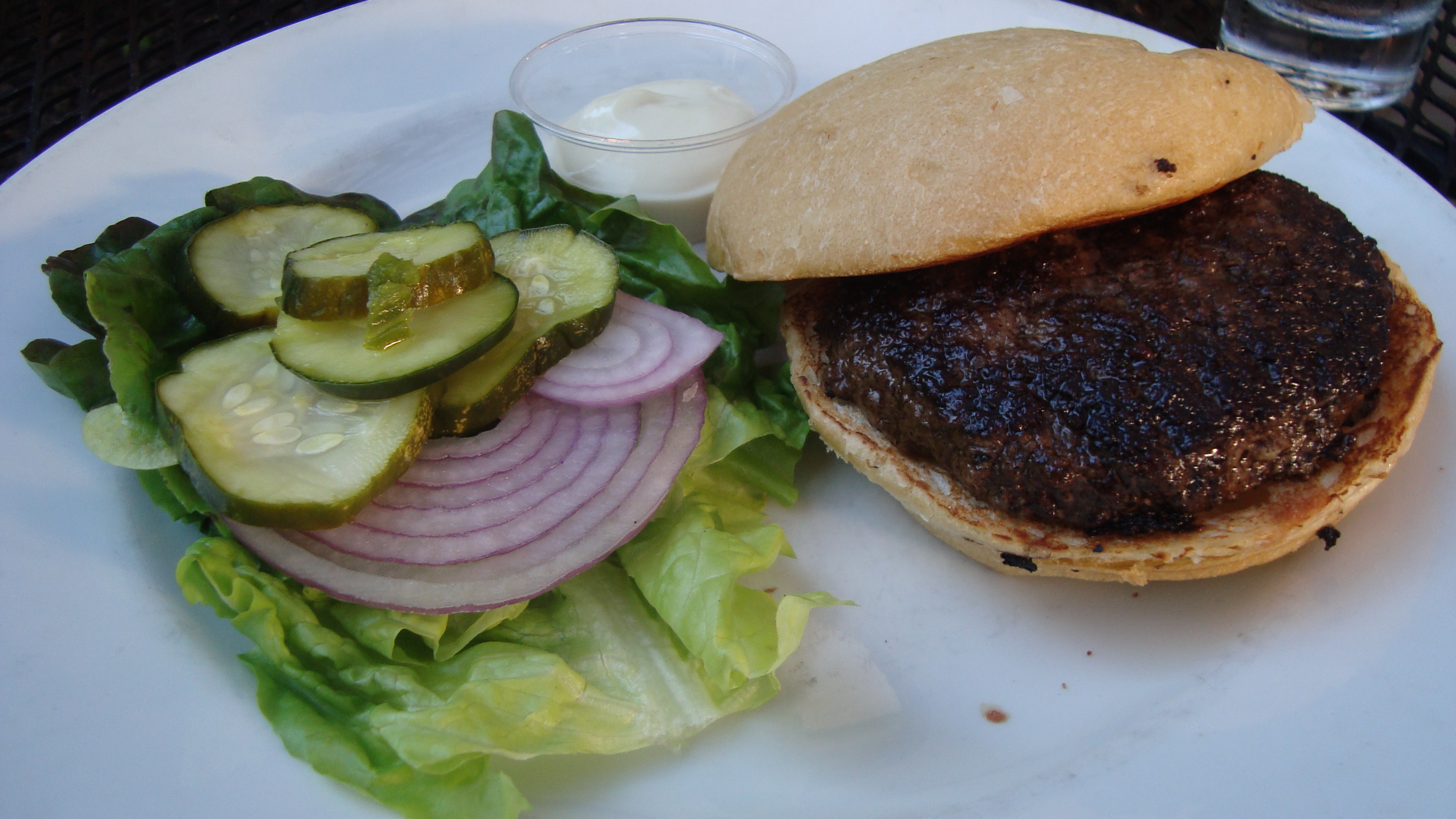 Eating at Dick's. They even put the condiments on the bottom. What a bunch of jerks.