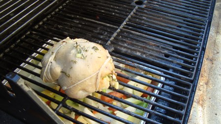 On Monday, I decided to mesh all of my primal inclinations, and roast a Game Hen on the grill… with the help of Weber’s Big Book of Grilling.