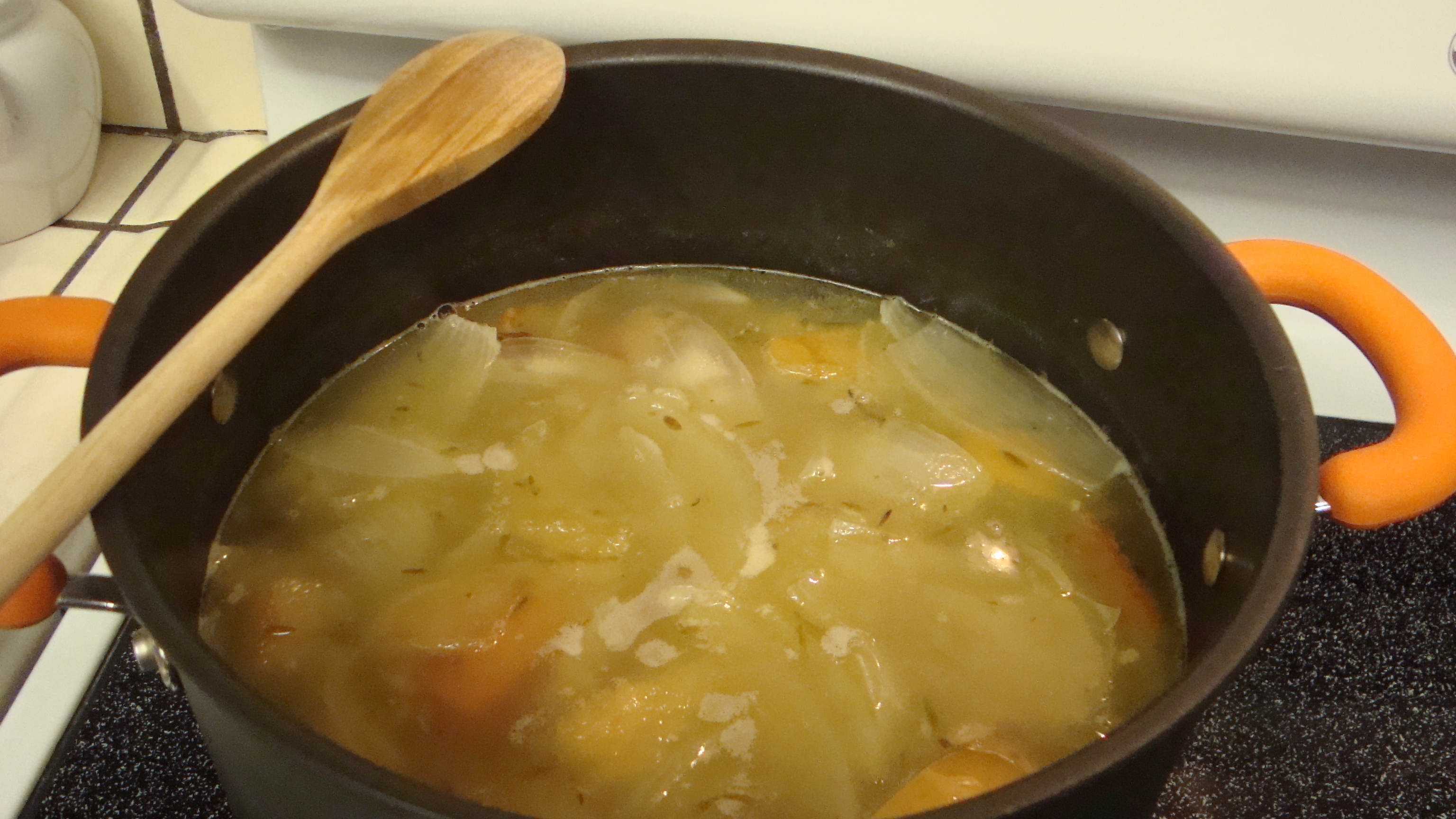 Throw all of those leftovers into a stock pot. Fill it up with water and bring to a boil. Reduce to a simmer and leave it uncovered for 3 hours.