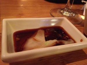 Like most sakes that you order up in the U.S., this rice wine was made in America. Now, while some of us may be bummed to find that our sake isn’t Japanese, you should be happy to know that this particular sake was made by Kushibiki Reiko… The first female sake master in these United States. This split of sake cost me eight bucks.