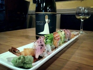 Normally, when we go out to sushi, I just get myself some beer or some hot sake. You’ve seen me bring my own wine out to sushi here and here.