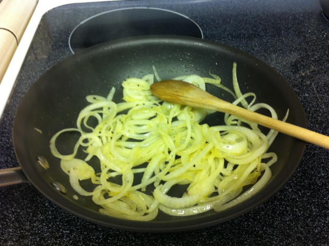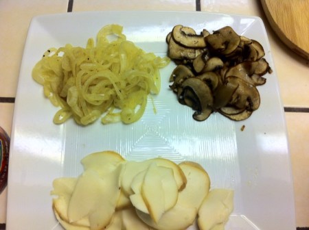 And here are some portabella mushrooms, sliced thinly and cooked to release their meaty flavor...