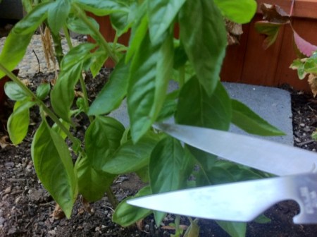 Use the pizza peel to flip the dough. Immediately place all of the toppings on your pizza except for the cheese. I put tomatoes and fresh basil on this one...