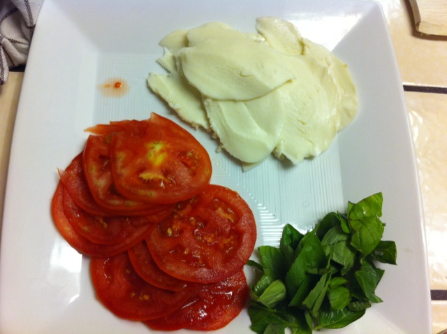 So the thing about barbecuing a pizza is that you have to work quickly once the dough is on the grill. Because of this, you must make sure that all of your toppings are ready to go before you throw anything over the fire. I made two pizzas the other night, so I prepped my toppings like so…